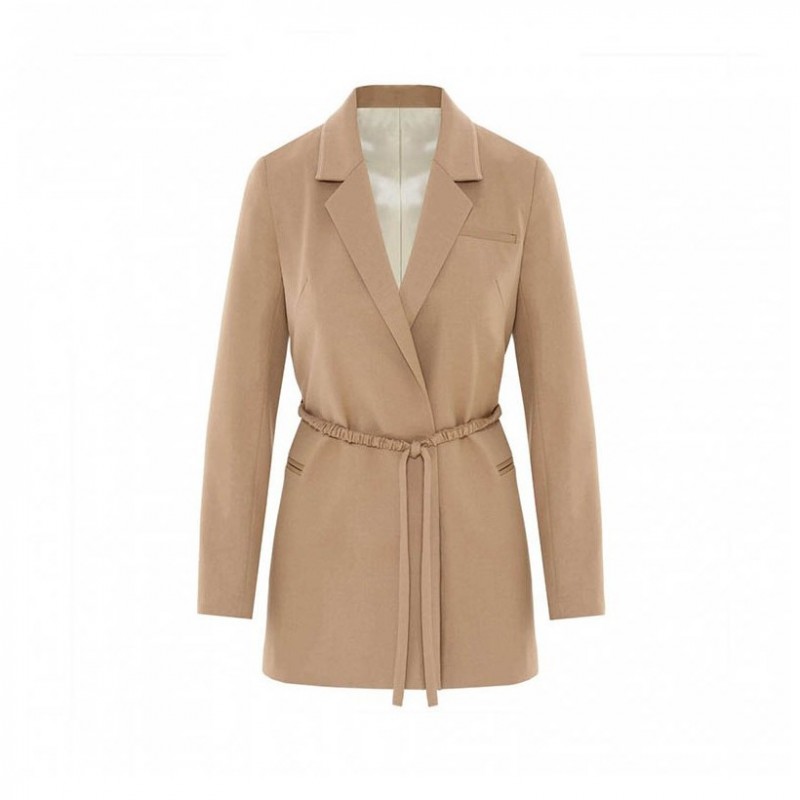 Το κλασικό blazer σε μείγμα βισκόζης twill ερμηνεύεται ξανά με χοντρό τρόπο από μια μίνι ζώνη με εσωτερικό λάστιχο. Διαθέτει ραφές με τρεις βελόνες στο λαιμό, διπλές τσέπες και τσέπη συμπλέκτη. Συνδυάστε το με στενό παντελόνι και biker boots για καθημερινή αστική εμφάνιση.