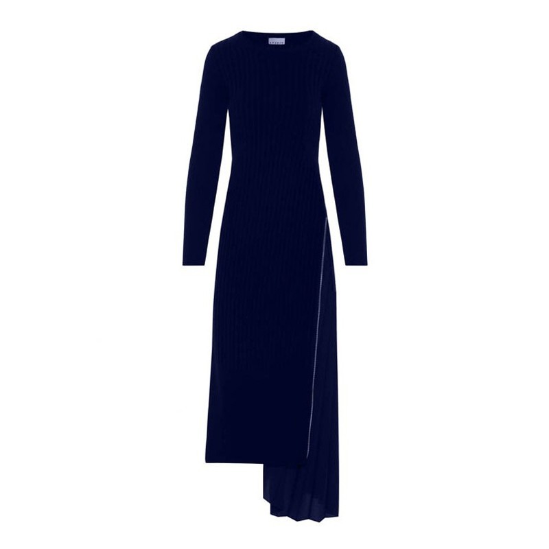 Αυτό το μάλλινο φόρεμα με μοτίβο στα μανίκια είναι ένα must have της σεζόν. Η μάξι σχισμή στο πλάι, διακοσμημένη με μεταλλικό φερμουάρ σε αντίθεση, αναδεικνύει μια πτυχωτή ολίσθηση που κάνει το ρούχο ευέλικτο και μοντέρνο.