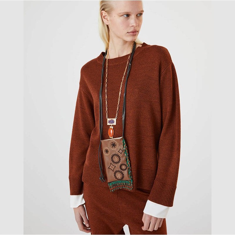 Αυτό το μάλλινο πουλόβερ με λαιμόκοψη έχει απαλή εφαρμογή και είναι εξαιρετικά μοντέρνο και λειτουργικό. Είναι διακοσμημένο με διπλή μανσέτα σε μείγμα μεταξιού σε αντίθεση, με πλευρικές σχισμές. Συνδυάστε το με το co-ord παντελόνι του για μια ζεστή αλλά κομψή εμφάνιση.