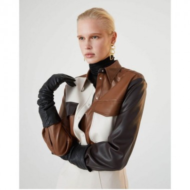 Αυτό το συνονθύλευμα πουκάμισο από συνθετικό δέρμα ξεχωρίζει για το εκλεπτυσμένο και μοντέρνο παιχνίδι του στα χρώματα. Οι ραφές αντίθεσης και η ετικέτα με maxi laser δίνουν μια πολύ τολμηρή πινελιά. Διασκεδάστε δημιουργώντας διαφορετικές εμφανίσεις!