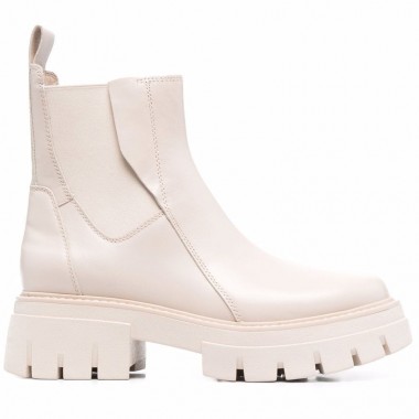 Λείες δερμάτινες μπότες σε χοντρές σόλες, φινιρισμένες με ελαστικές πλαϊνές γλωττίδες. Η επένδυση έχει σχεδιαστεί όμορφα, δίνοντας στα παπούτσια μια μικρή αντίθεση. Ειδοποίηση σπόιλερ - υπάρχει κάποια έκπληξη στις ανάγλυφες εξωτερικές σόλες. Προορίζεται να ξεχωρίσει σε διάφορες περιστάσεις, από ένα περιστασιακό ραντεβού έως μια επαγγελματική συνάντηση. Χρώμα: Whisper.